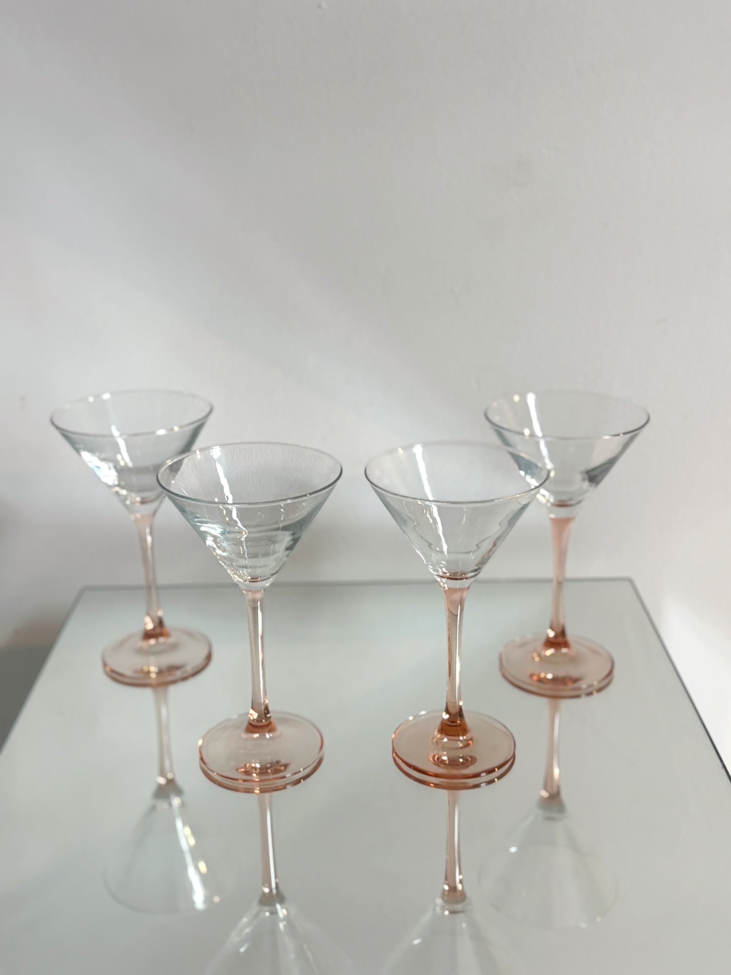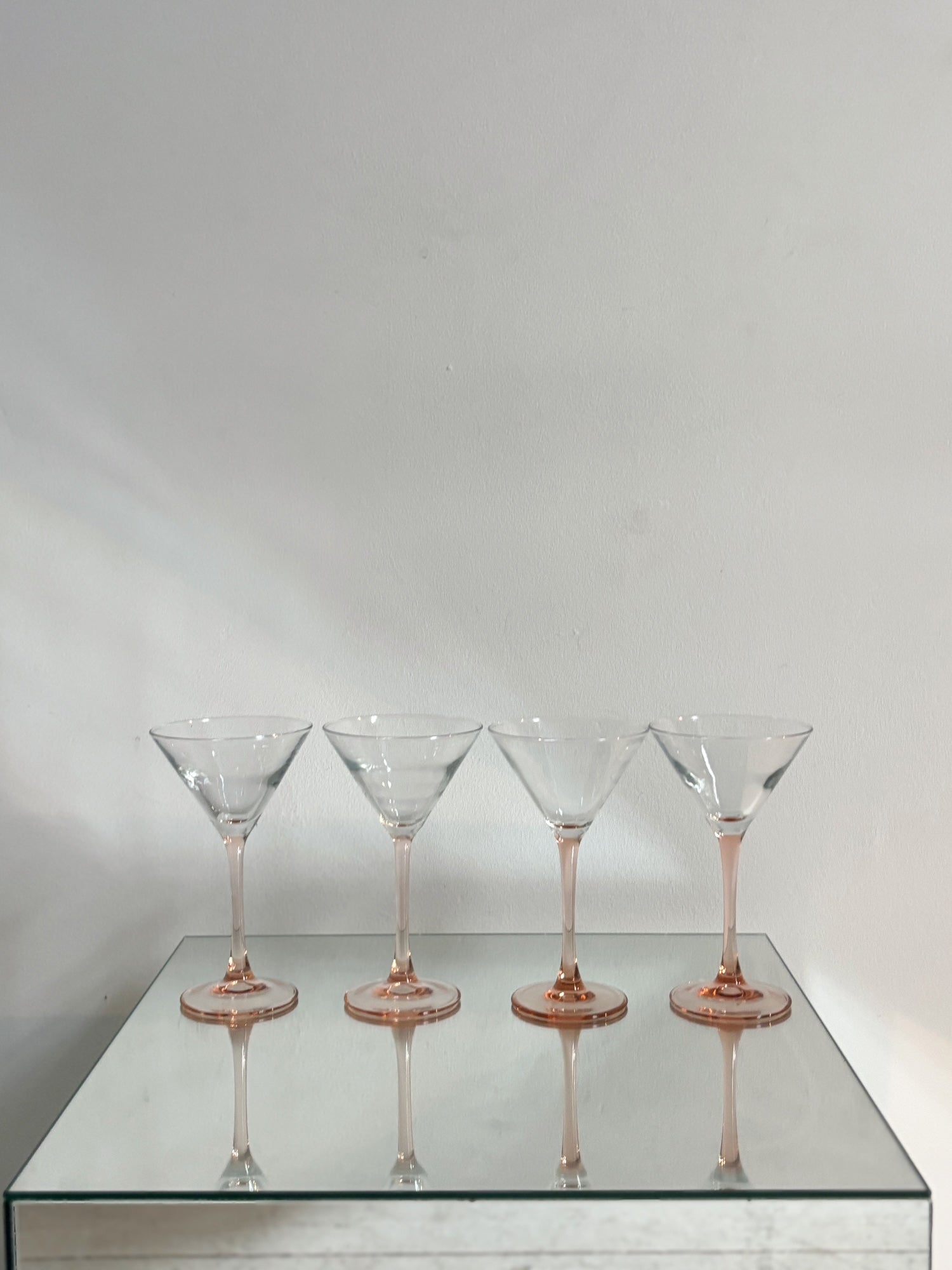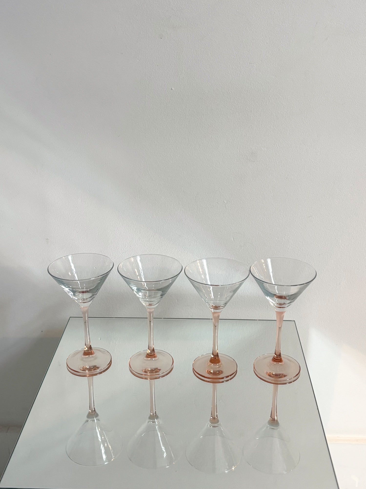 4 verres à cocktail, pieds roses de la marque française Luminarc.