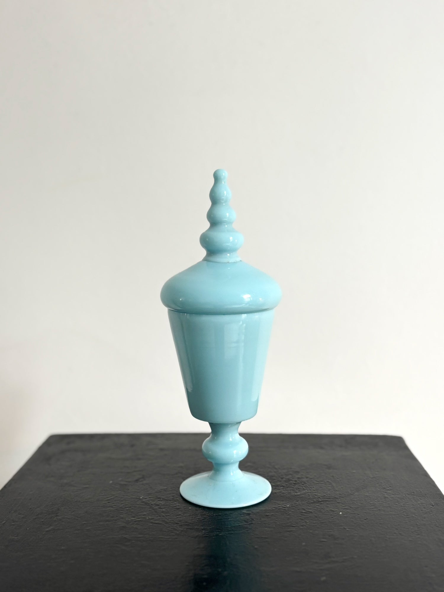 Bonbonnière, drageoir, en opaline de Porieux bleue ciel. Vintage et en excellente condition.