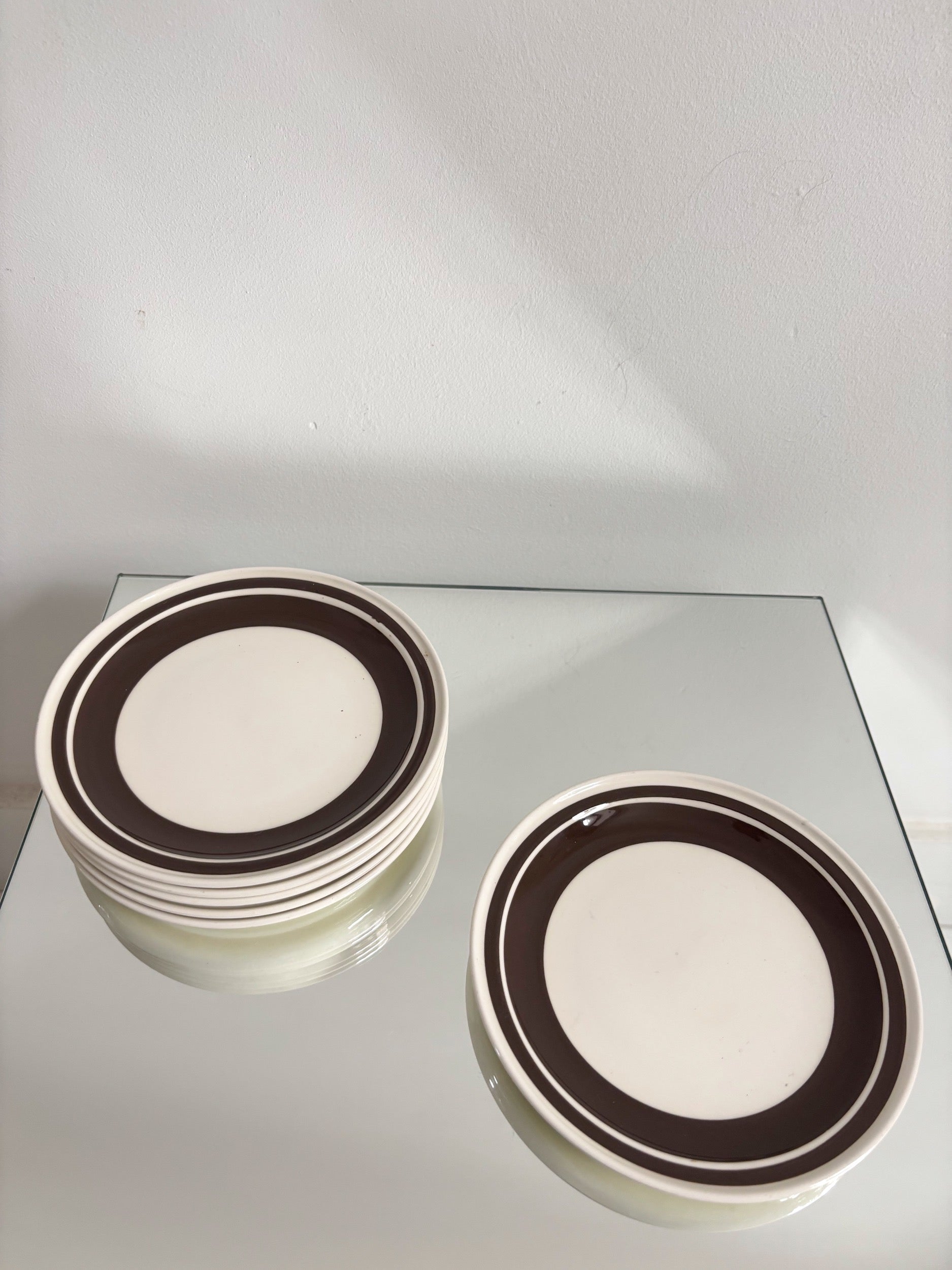 Ensemble de 6 petites assiettes de Carrigaline Pottery, Irlande. Beige à bords bruns. Vintage. En excellente condition.