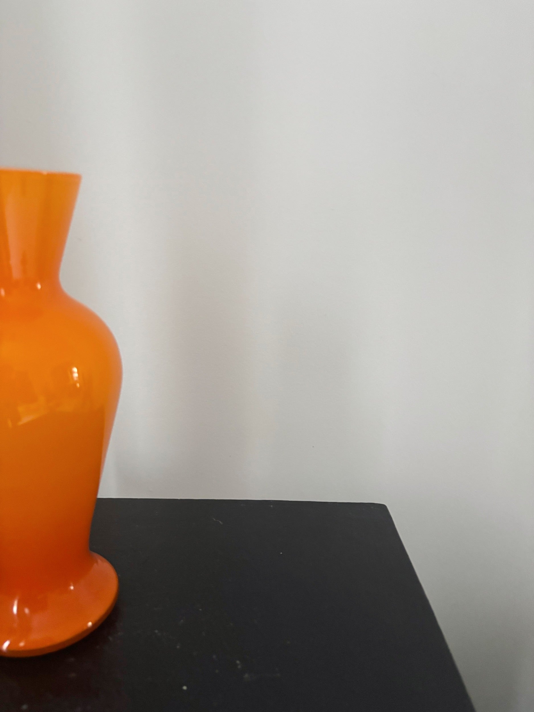 Petit vase orange en opaline, intérieur blanc; Vintage et une excellente condition.