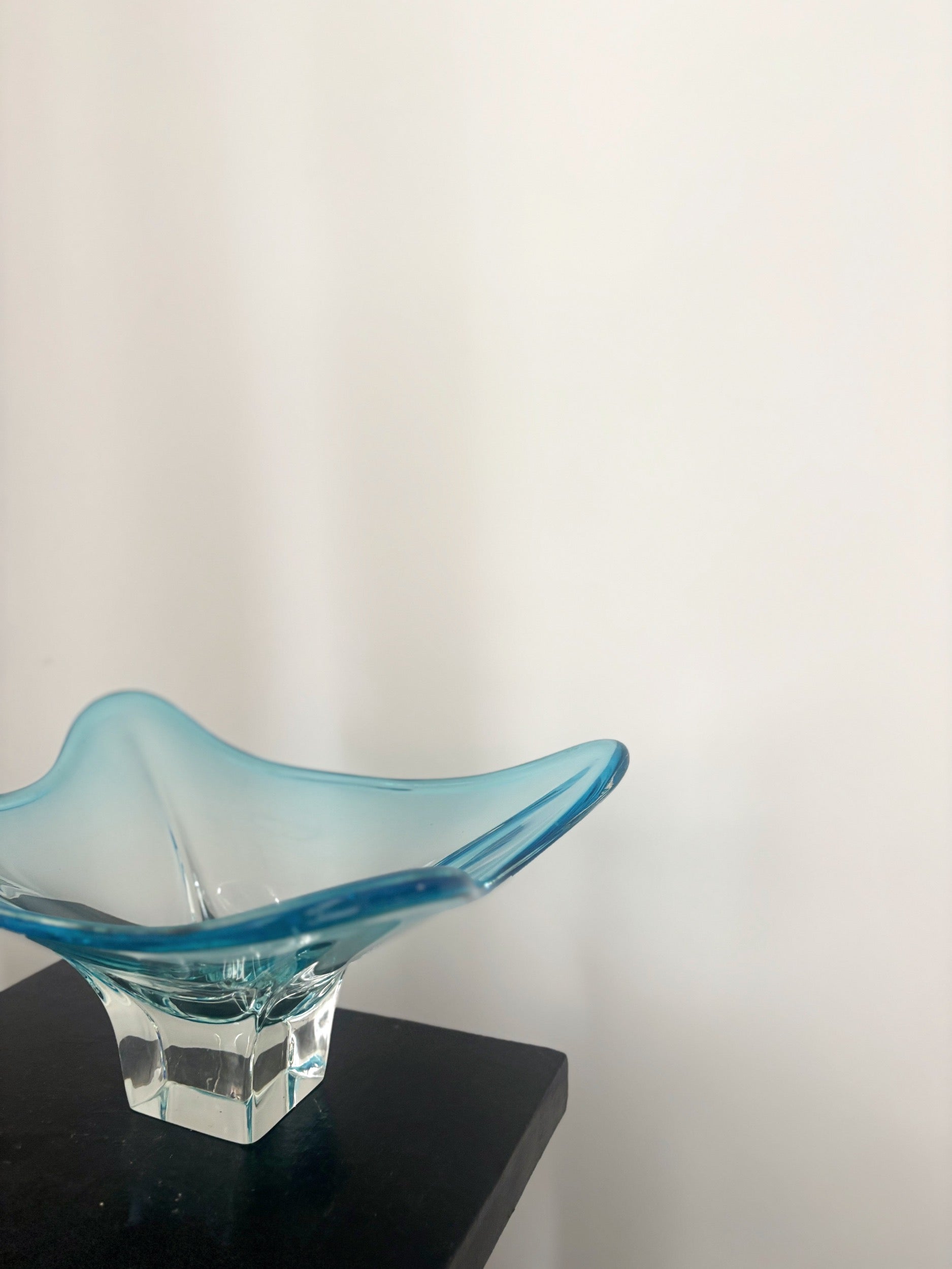 Plat graphique, en verre de Murano, bleu ciel; Vintage et une excellentes conditions.
