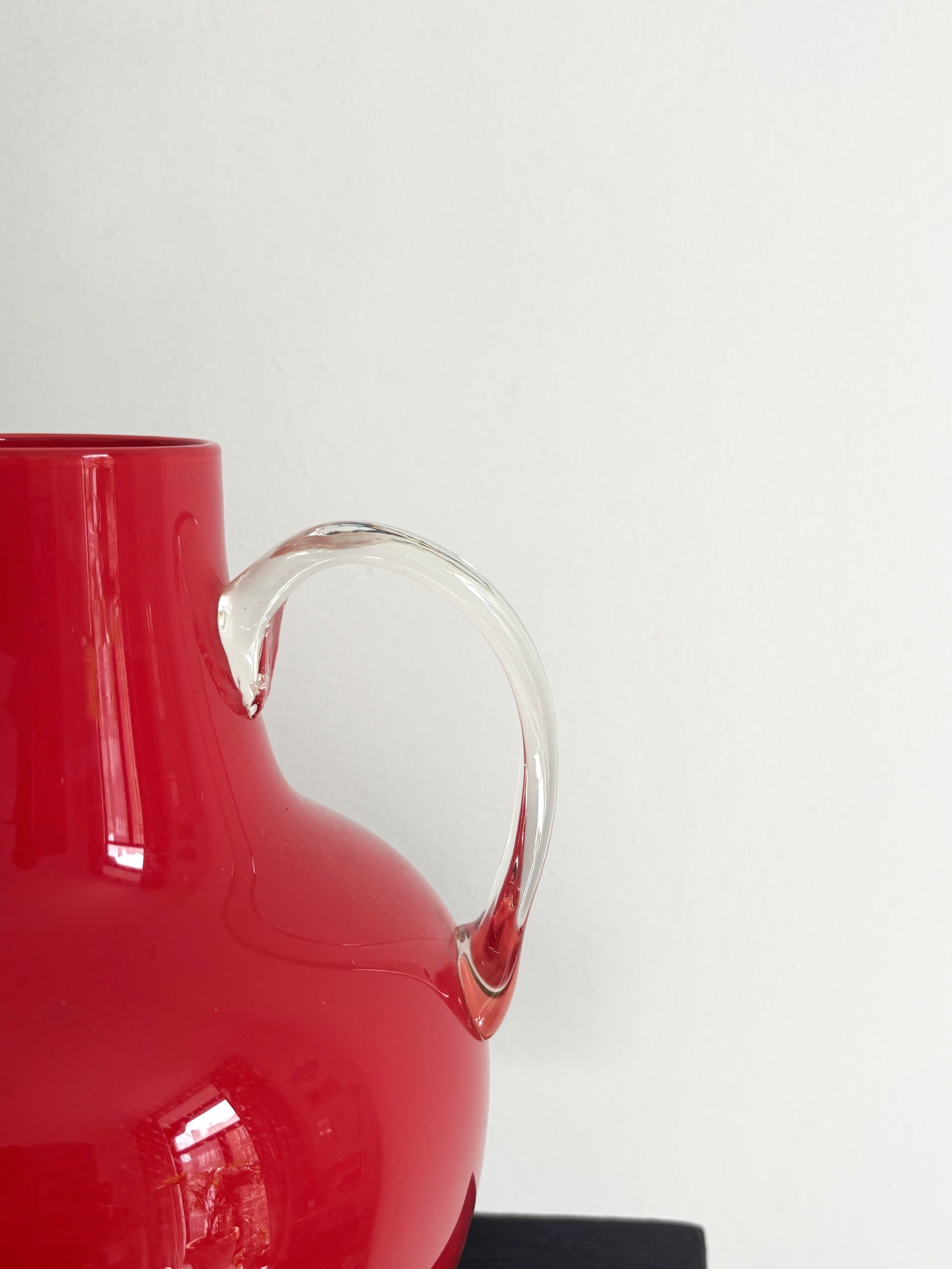 Vase en opaline d'Empoli, rose framboise, anse transparente. De la marque OPALINO. Vintage, opaline datant plutôt de la fin des années 60, début 70. En excellente condition.