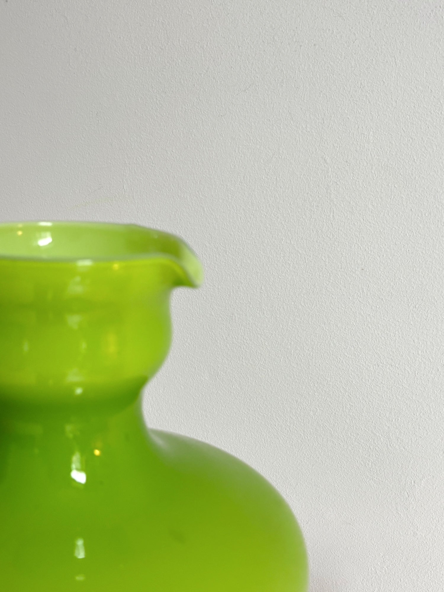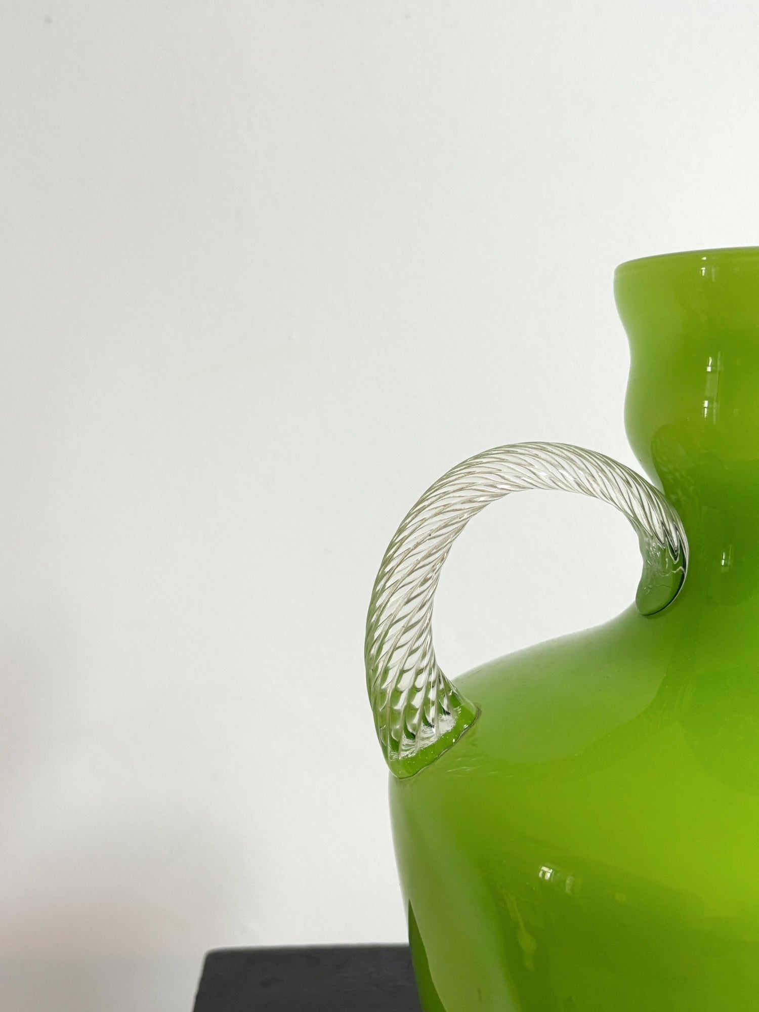 Vase en opaline d'Empoli, anse transparente, vert citron. Vintage (A,,ées 60 ) en excellente condition.